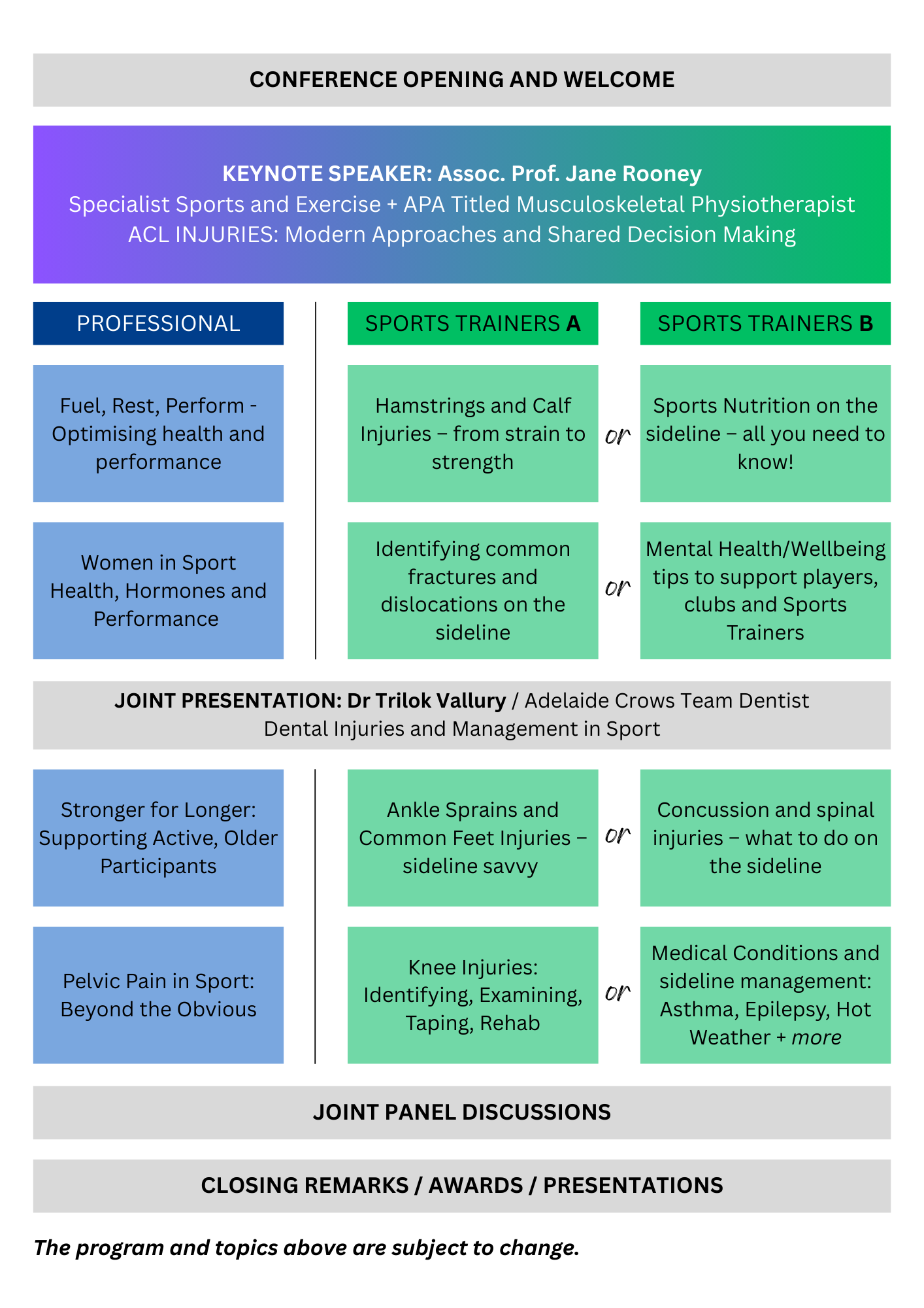Inviting the Sports Medicine Community to join us for the 2026 Sports Medicine Conference, Sunday 1st March 2026, Adelaide Crowne Plaza.